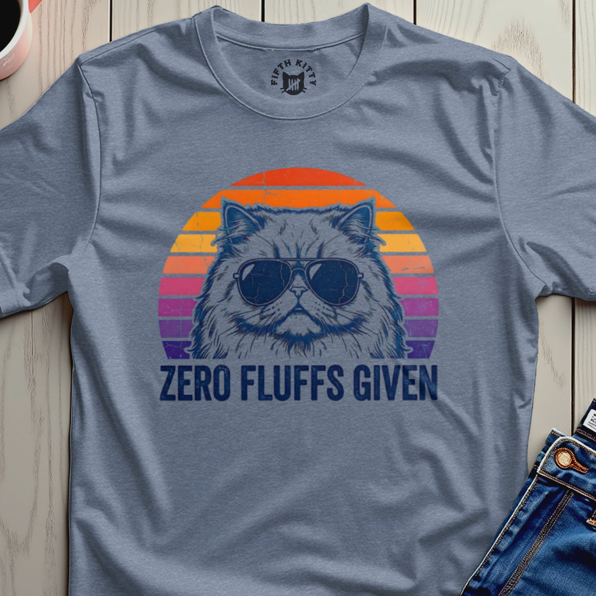 Embrace your inner catitude with this hilarious "Zero Fluffs Given" t-shirt.Β